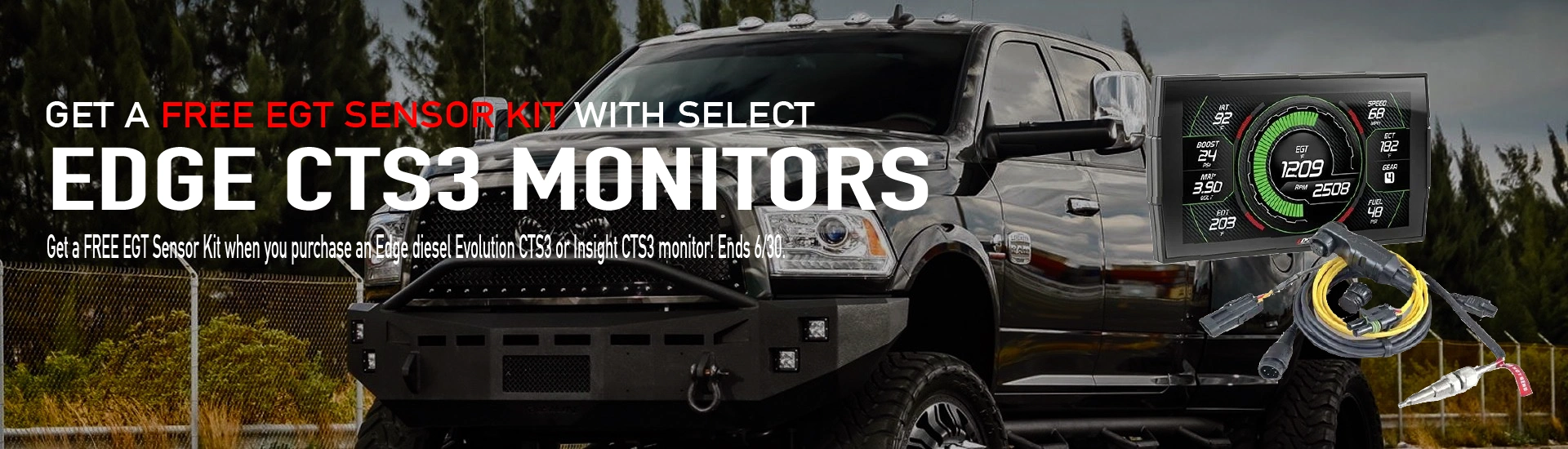 Claim a FREE EGT Sensor Kit (98620) when you purchase an Edge Diesel Evolution CTS3 or Insight CTS3 monitor! Ends 6/30.
