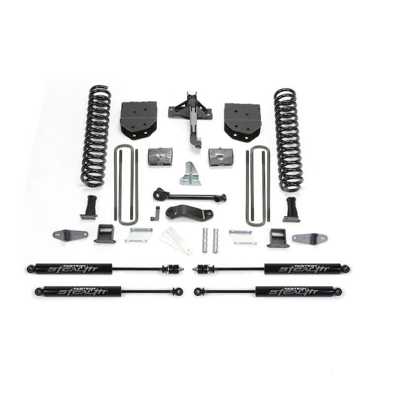 Fabtech 6″ Basic System Lift Kit W/ Stealth Shocks (K2050M) system provides 6″ of lift to clear 315/70R17 tires for the entry-level enthusiast. The system utilizes the factory Radius Arms with new heavy-duty frame brackets for the budget-minded offroader. Lift height is accomplished with 6″ Performance Coil Springs in the front and a Block & U-bolt kit in the rear. The system includes a Trac Bar relocation bracket, Pitman Arm, and Sway Bar brackets.