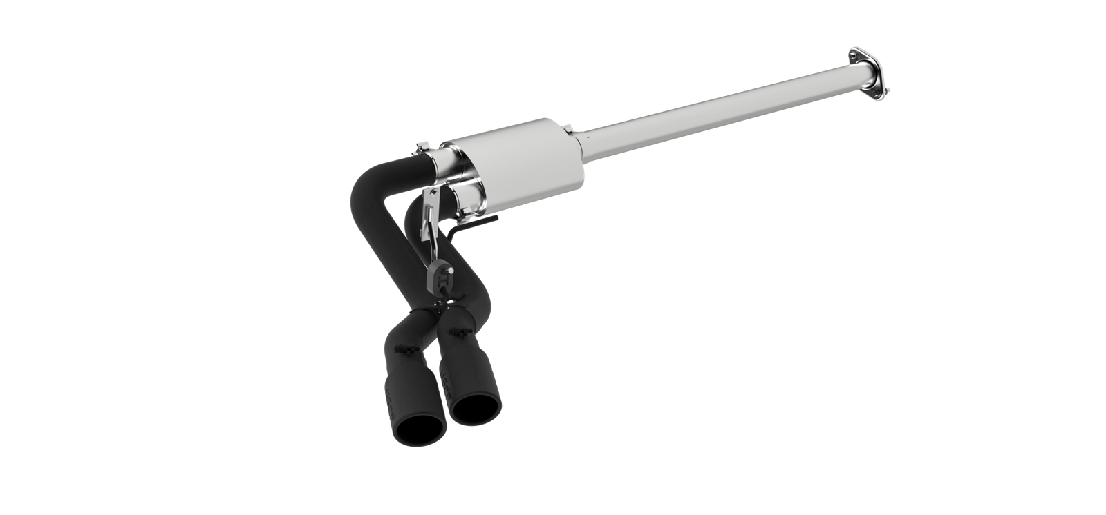 Black coated 3 Inch Cat Back Pre-Axle Dual Outlet (Race Version) 3 Inch Cat Back, Single Side Dual Outlet Inch Front of Rear Wheel, Black Our Black Series performance exhaust systems offer a true murdered-out style without compromising on quality and performance.